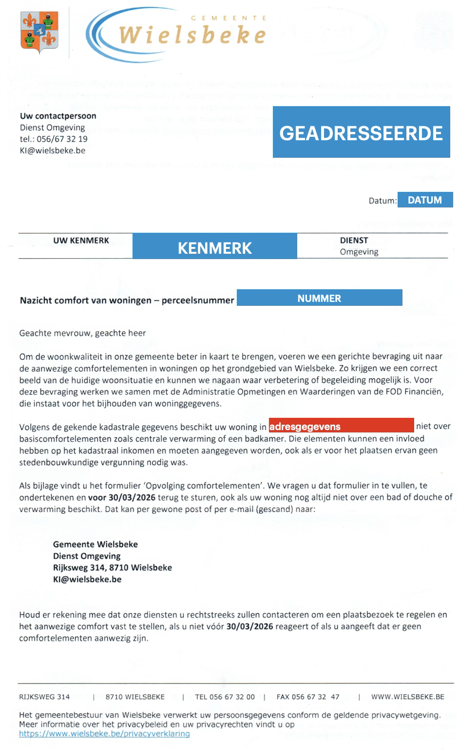 Zo'n 1200 huishoudens in de gemeente Wielsbeke kregen in februari of begin maart een schrijven in de bus, bijgevoegd een geanonimiseerd voorbeeld.