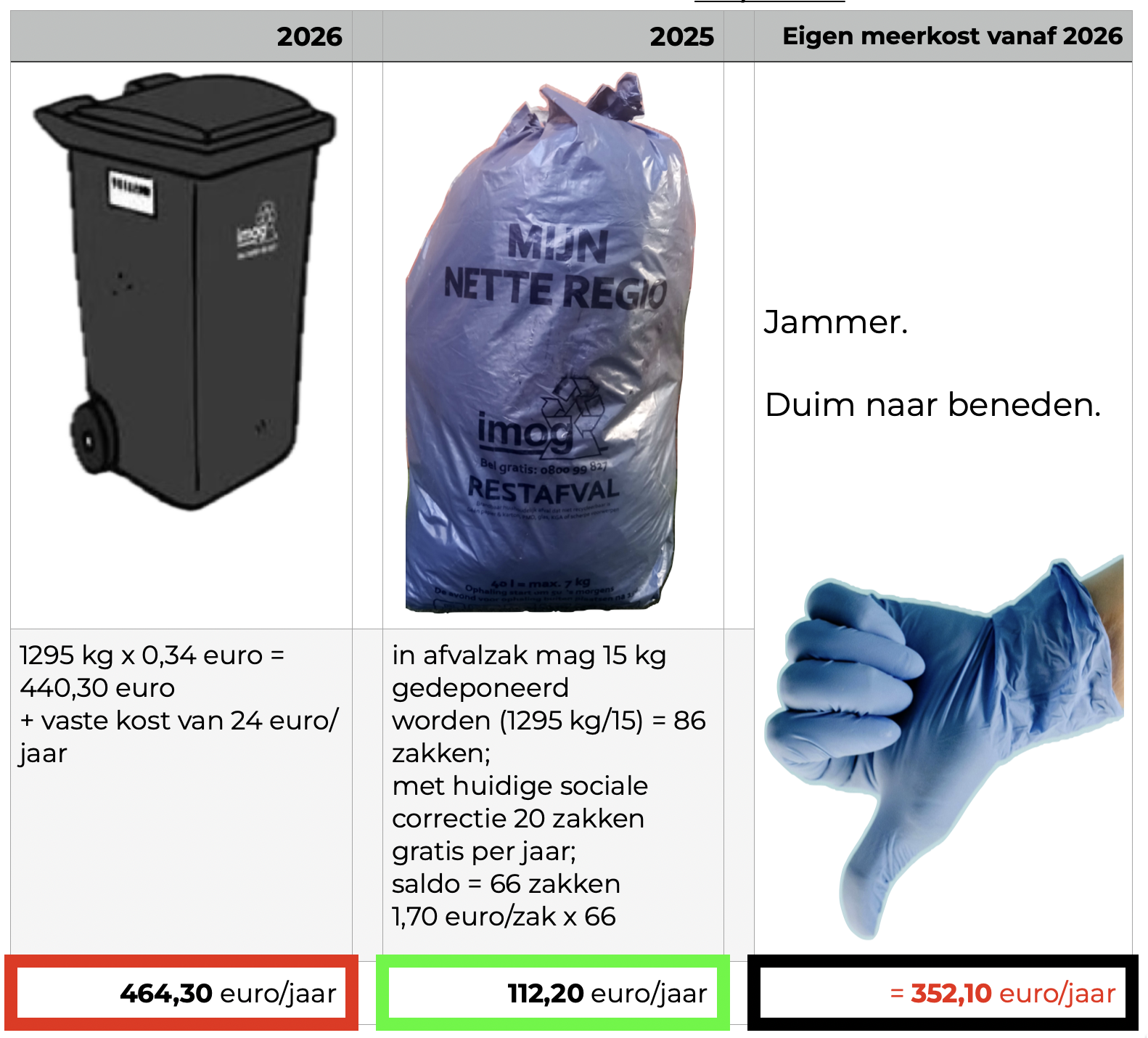 Hoeveel betaalt die inwoner: Een meerkost van liefst 352,10 euro.